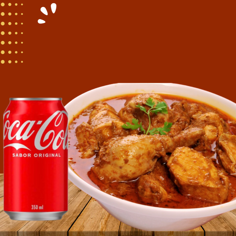 Que tal um delicioso frango ao molho com sabor de comida caseira. Acompanhado de arroz, feijão, farofa da casa e uma coca cola de 350 ml
