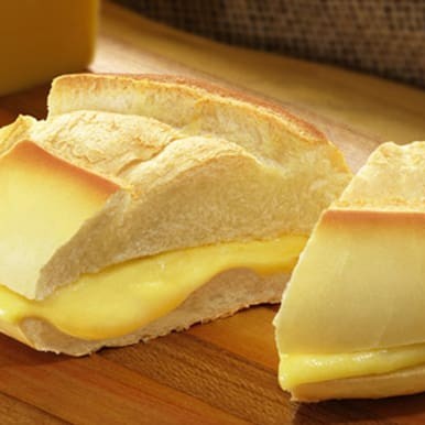 Delicioso queijo quente no tradicional pão francês, com duas fatias de muçarela.