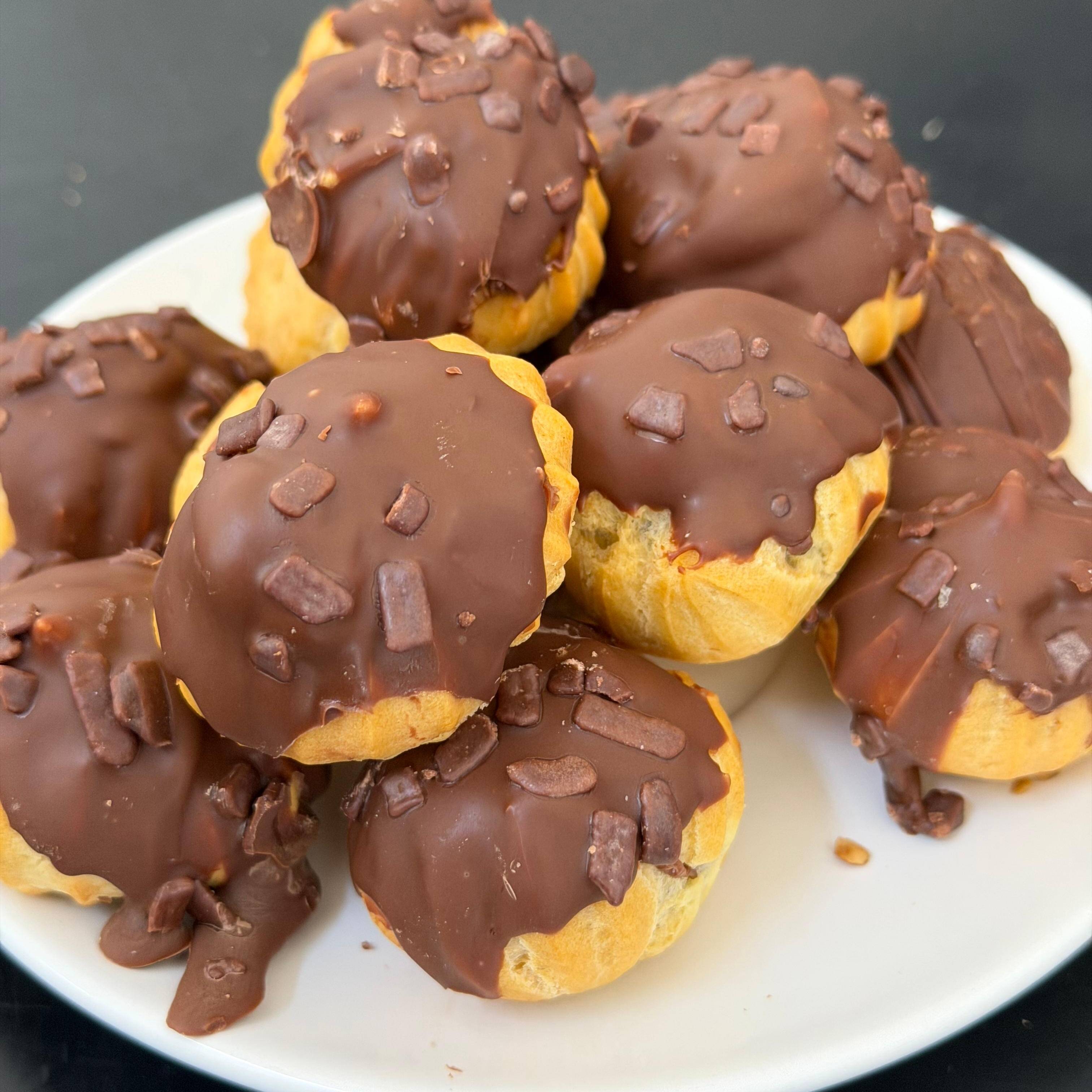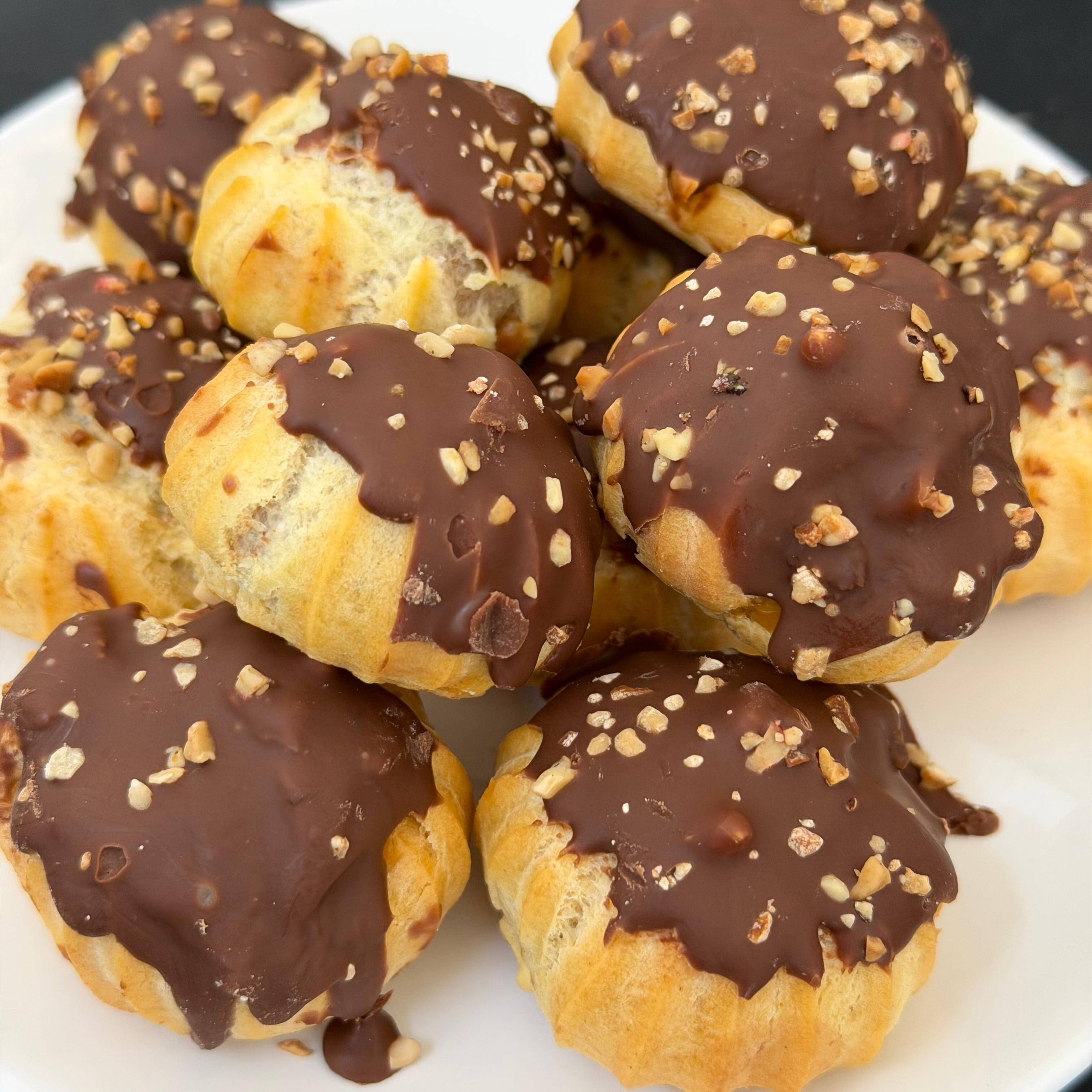 Deliciosa massa da carolina numa versão ainda maior, recheada com doce de leite artesanal, banhada no chocolate com castanhas. Aproximadamente 150g.