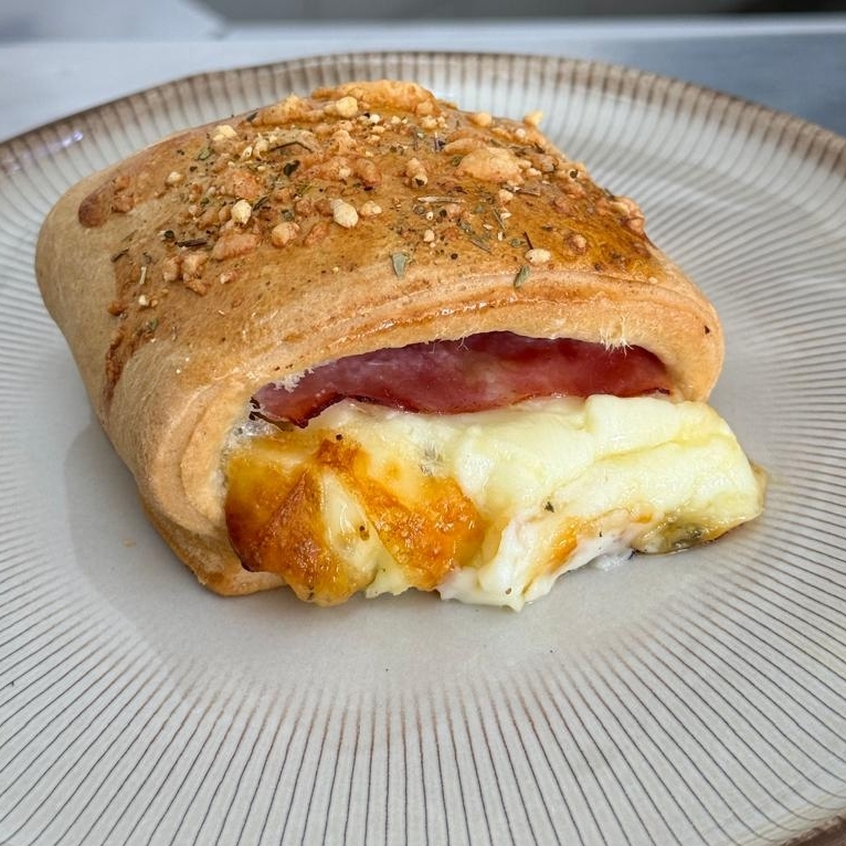 Delicioso salgado artesanal feito aqui na padaria, recheado de presunto e queijo com catupiry.