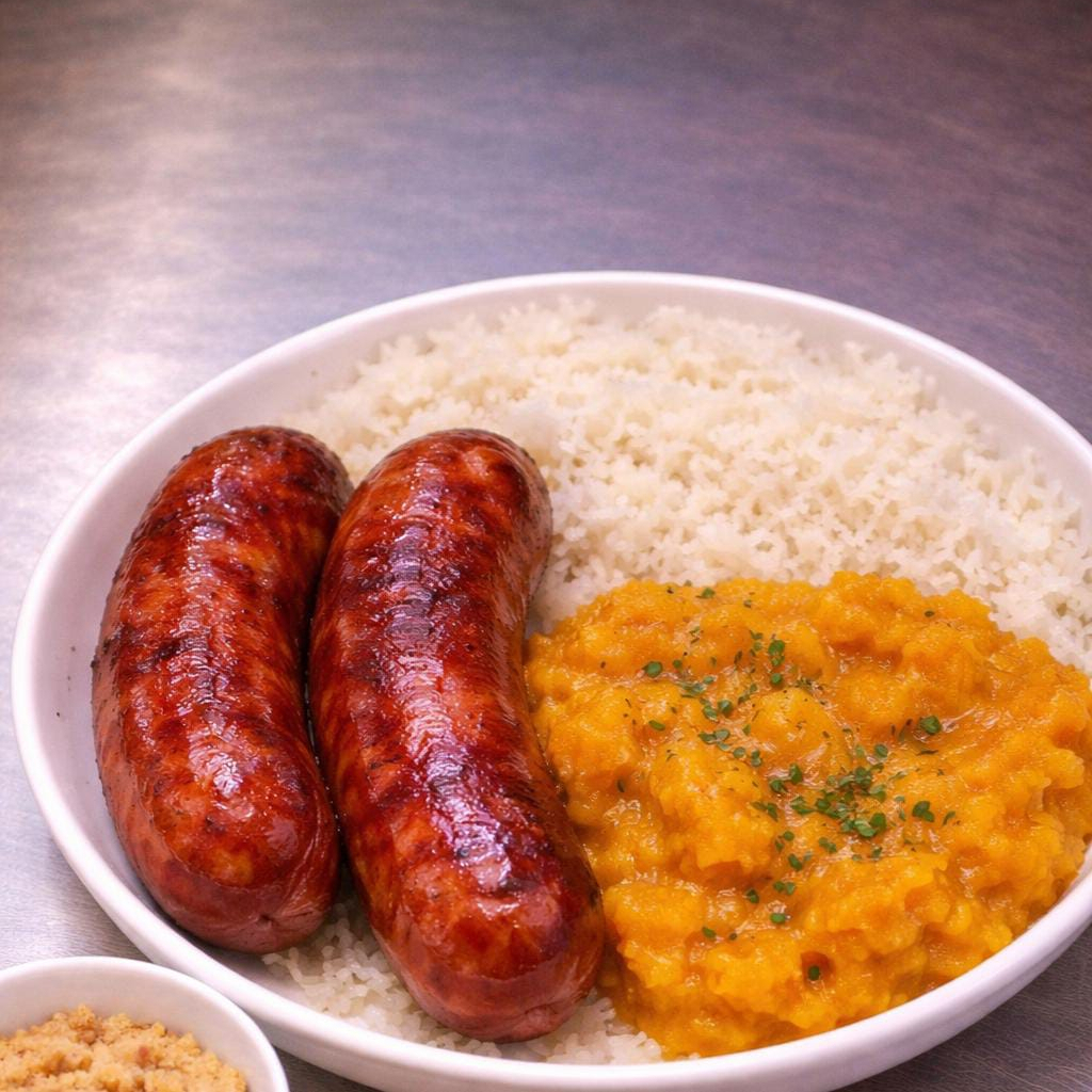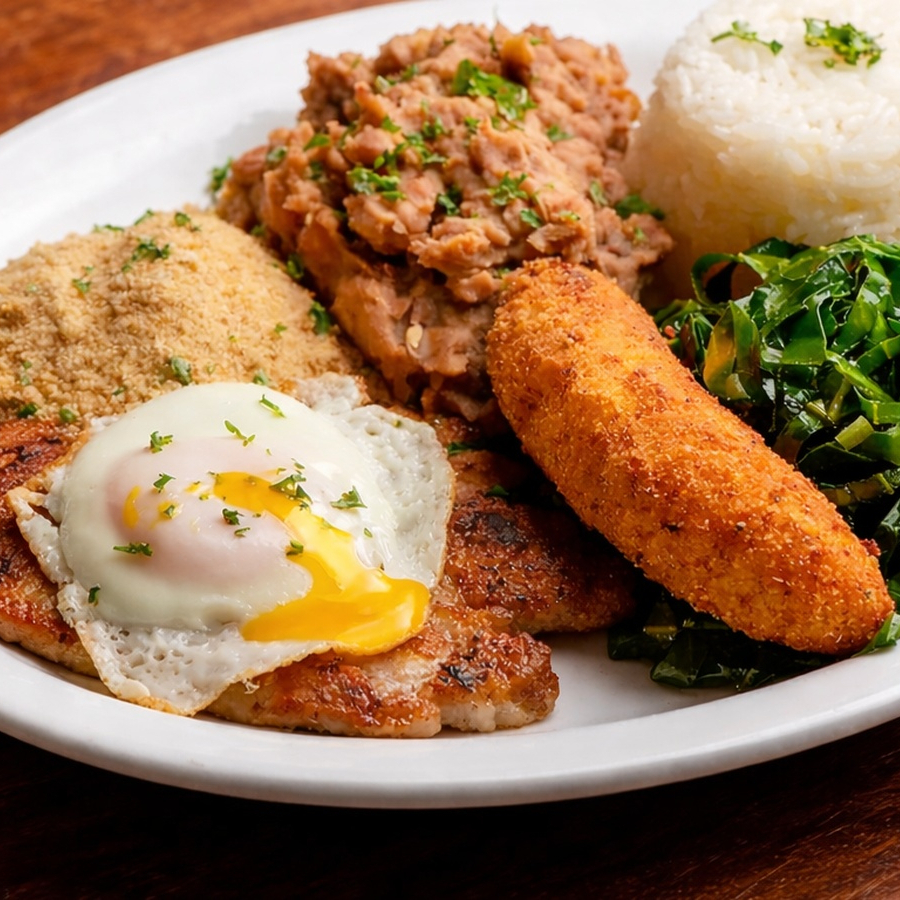 Deliciosas Bisteca grelhada bem douradinhas e suculenta, acompanhadas de arroz branco soltinho, feijão fresquinho, Couve refogada e Farofa temperada especial da casa. Uma combinação caseira, bem servida e cheia de sabor — perfeita para um almoço caprichado!