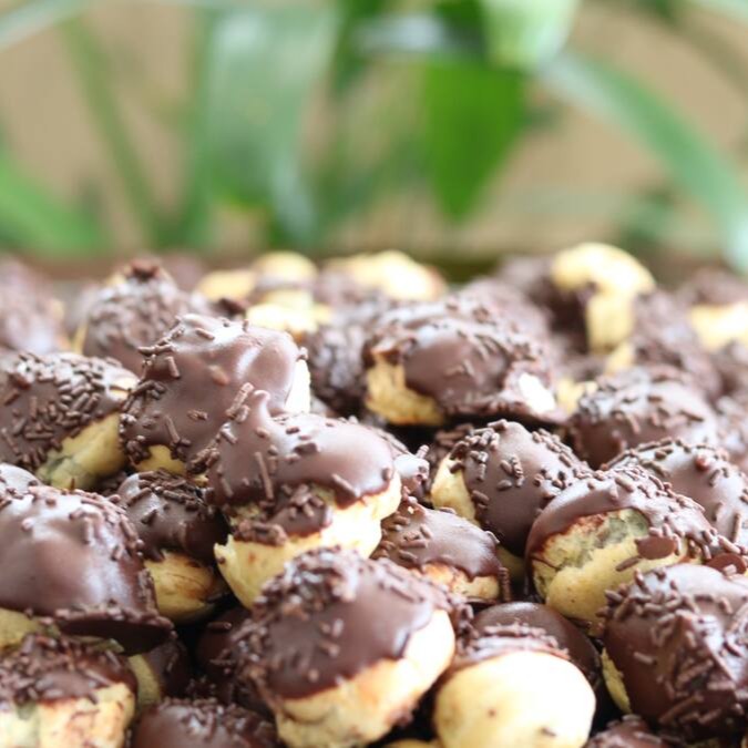 Deliciosa carolina com recheio de brigadeiro caseiro com Aproximadamente 20 (Vinte) gramas por unidade.