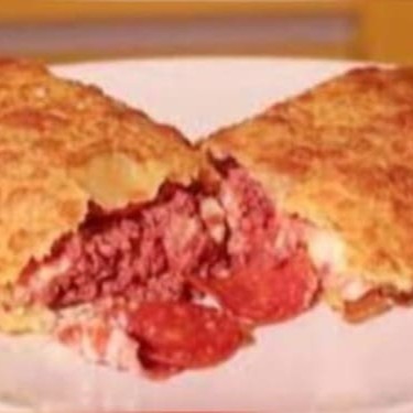 Massa de pastel caseira, sequinha e cremosa, recheada com Pepperoni em rodelas uma delícia de qualidade! + Cream Cheese. Pastel 22 cm.
