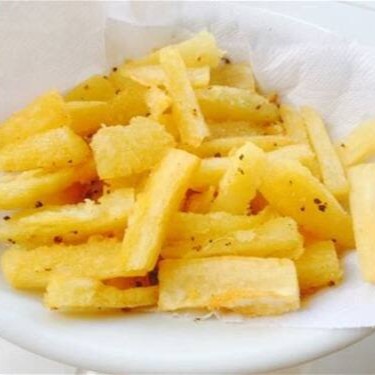 Porção de Mandioca. Média 300g. Pesado antes de fritar, pode ocorrer pequenas variações após a fritura.