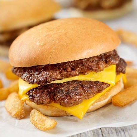 Delicioso Pão Brioche Bambini; 2 hambúrgueres suculentso, caseiro e artesanal à moda da chef, irresistível com uma 2 generosas fatias de queijo derretido, uma combinação clássica, Básica porém sem deixar de ser deliciosa!