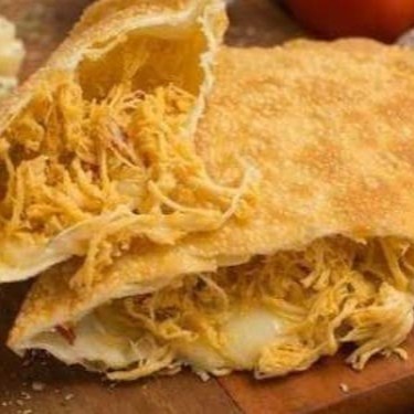 Massa de pastel caseira, sequinha e cremosa, recheada com o frango desfiado temperado à moda da casa + Recheio Adicional À Sua Escolha, muito gostoso e bem recheado! Pastel de 22cm.
