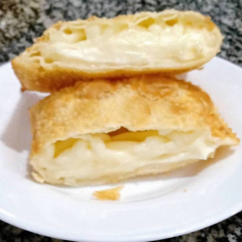 Massa de pastel caseira, sequinha e cremosa, recheada com delicioso Doce De Leite. Pastel 11 cm.