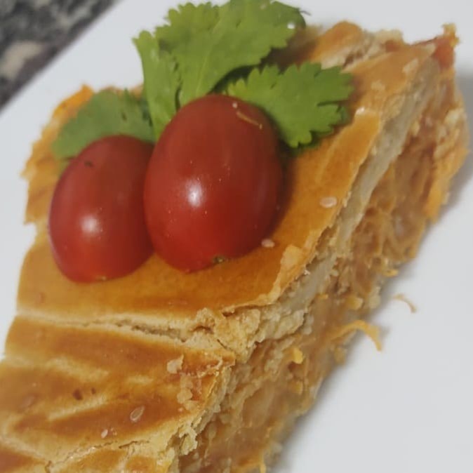 Massa de pastel caseira, sequinha e cremosa, bem recheado, tradicional pastel de Carne com um Complemento À Sua Escolha, pelo chef com temperos exclusivos e azeitona. Pastel de 22 cm. Adicional à escolha!