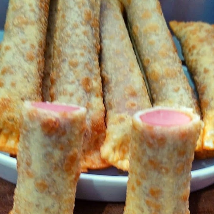 Salsicha Sadia Hot Dog, enrolada com generosa fatia de queijo muçarela, envoltos em uma massa de pastel crocante e deliciosa !