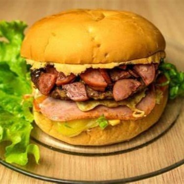 Delicioso Pão Brioche Bambini; 2 hambúrgueres suculento, caseiro e artesanal à moda da chef, irresistível com uma generosa fatia de queijo derretido (muçarela padrão podendo substituir por cheedar, só colocar em observação), presunto, alface americana crocante e tomate frescos, ovo, bacon em fatias, requeijão cremoso e Calabresa em rodelas; uma combinação clássica e deliciosa