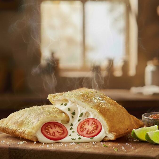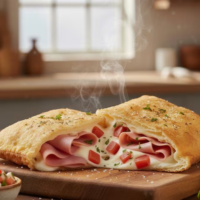 Recheio saboroso com presunto, muçarela, ovo, cebola, tomate e azeitonas, inspirado na tradicional pizza portuguesa. Tudo isso dentro de uma massa crocante e dourada!