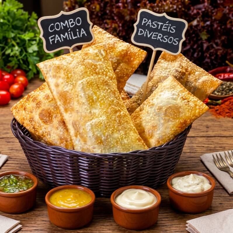 Recheio generoso de Presunto e Queijo Mussarela derretido. Toque Gourmet: Azeitonas fatiadas, rodelas frescas de Tomate e uma pitada aromática de Orégano. Ação: Tudo embrulhado em massa de pastel crocante, pronto para fritar