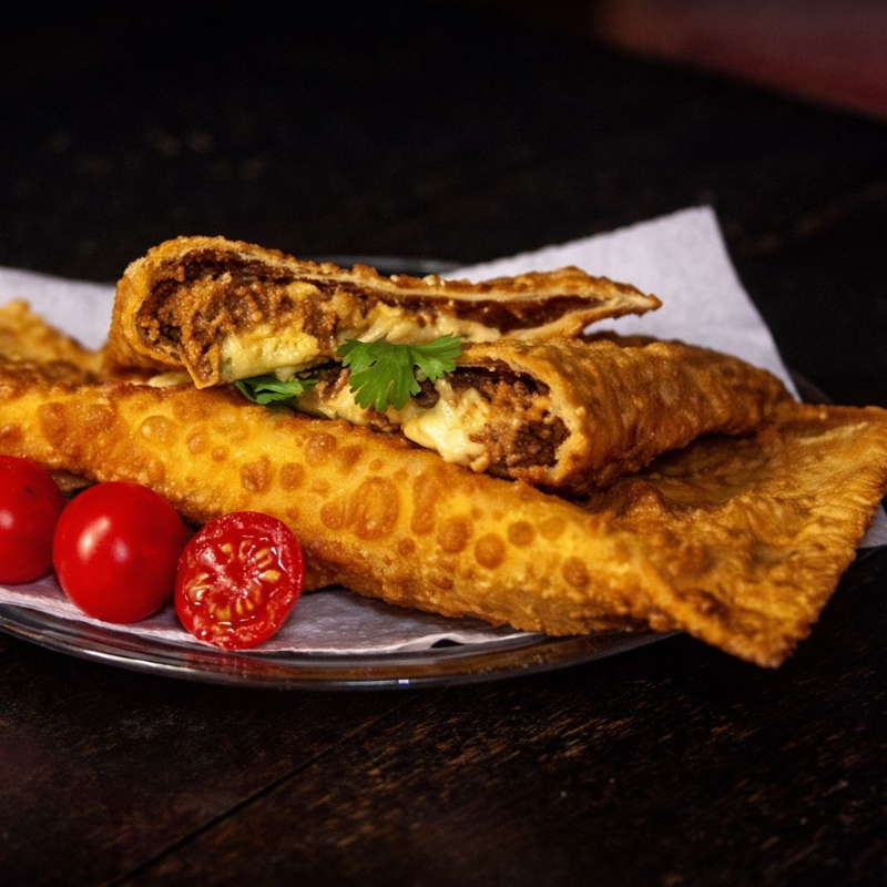 Massa crocante e dourada na medida certa, recheada com carne moída bem temperada, suculenta e cheia de sabor, combinada com azeitonas que dão aquele toque especial irresistível. Cada mordida é uma explosão de sabor, perfeita pra matar a fome e deixar aquele gostinho de “quero mais”.