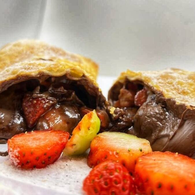Pastel doce ,tipo charuto, polvilhado com açúcar e canela por fora. Tamanho padrão dos pastéis: 20 centímetros.