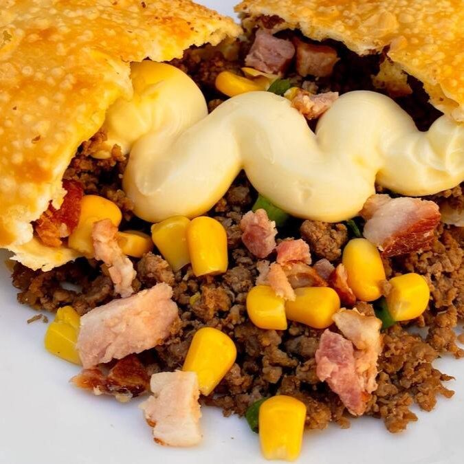 Carne soltinha e bem temperada com cebolinha a gosto, aroma sensacional, acrescentado de Catupiry dando cremosidade, o milho?! Crocância perfeita, e o bacon?! suculência surreal, uma explosão de sabores e sensações em um único pastel, fazendo a cada mordida sua boca encher d'aguá!!! Recheio do começo ao fim! Tamanho 20 cm, aproximadamente 135g de recheio (Não adicionamos e nem retiramos ingredientes)