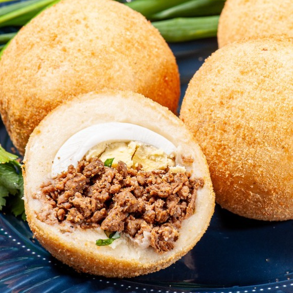 Ovo cozido, carne moída empanados