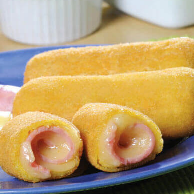 Enroladinho de Presunto e Queijo Crocantes, sequinhos, dourados e recheados com a combinação clássica de presunto e queijo derretido. Porção perfeita para compartilhar (ou não!). Ideal como entrada, lanche ou acompanhamento. Sempre fresquinhos e preparados na hora!