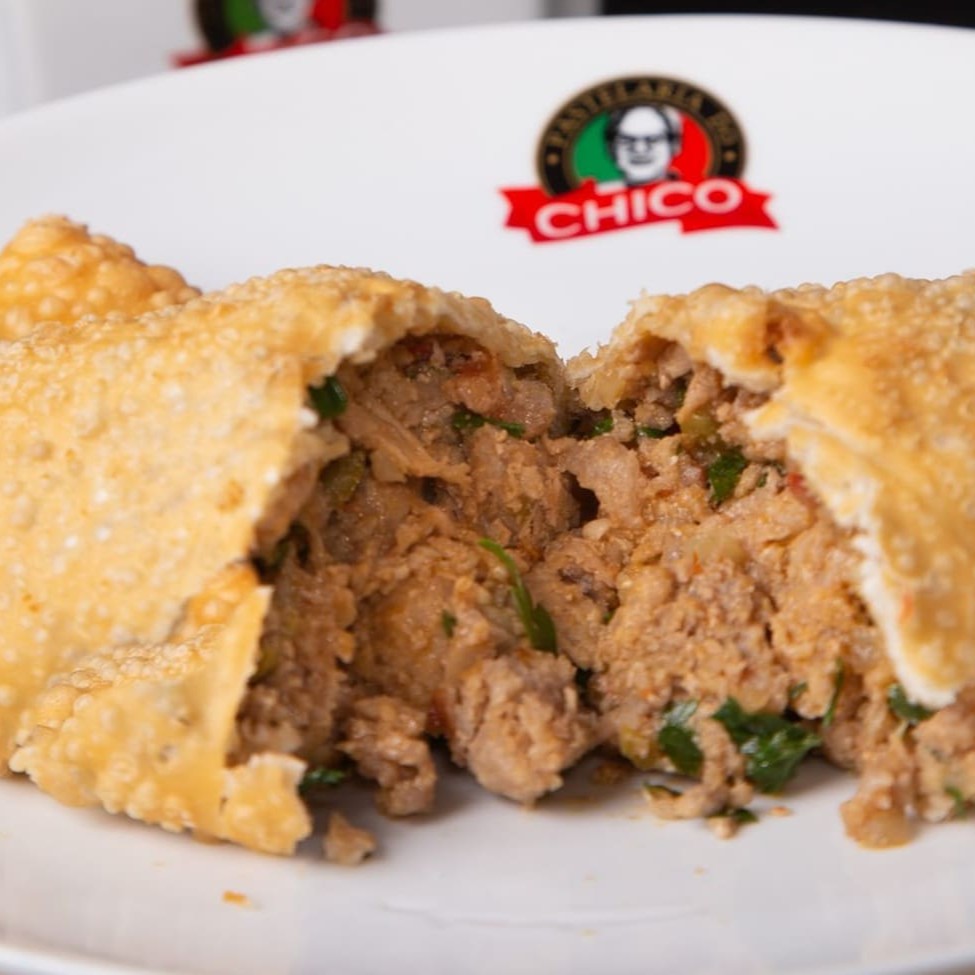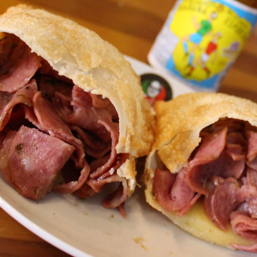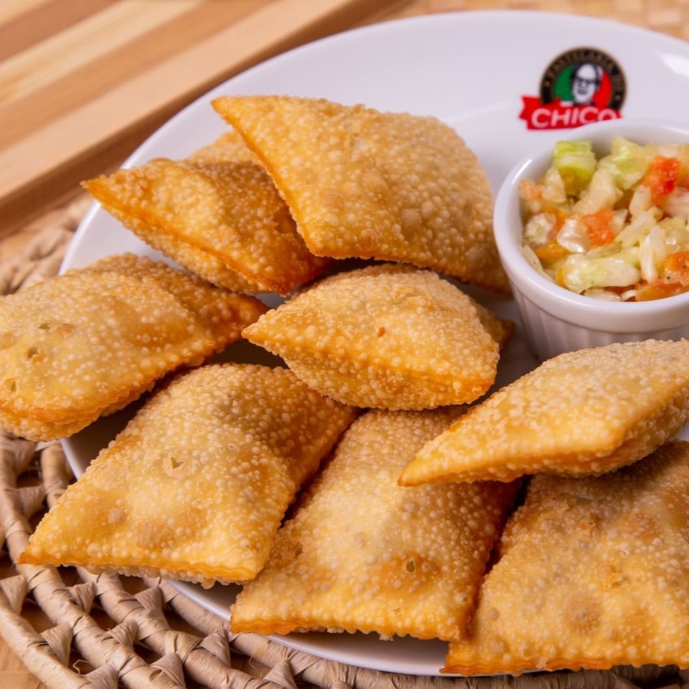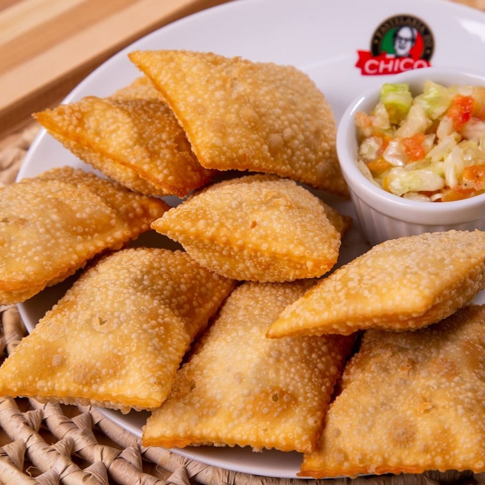 Salgado a base de trigo, recheado com carne, salsinha e azeitona