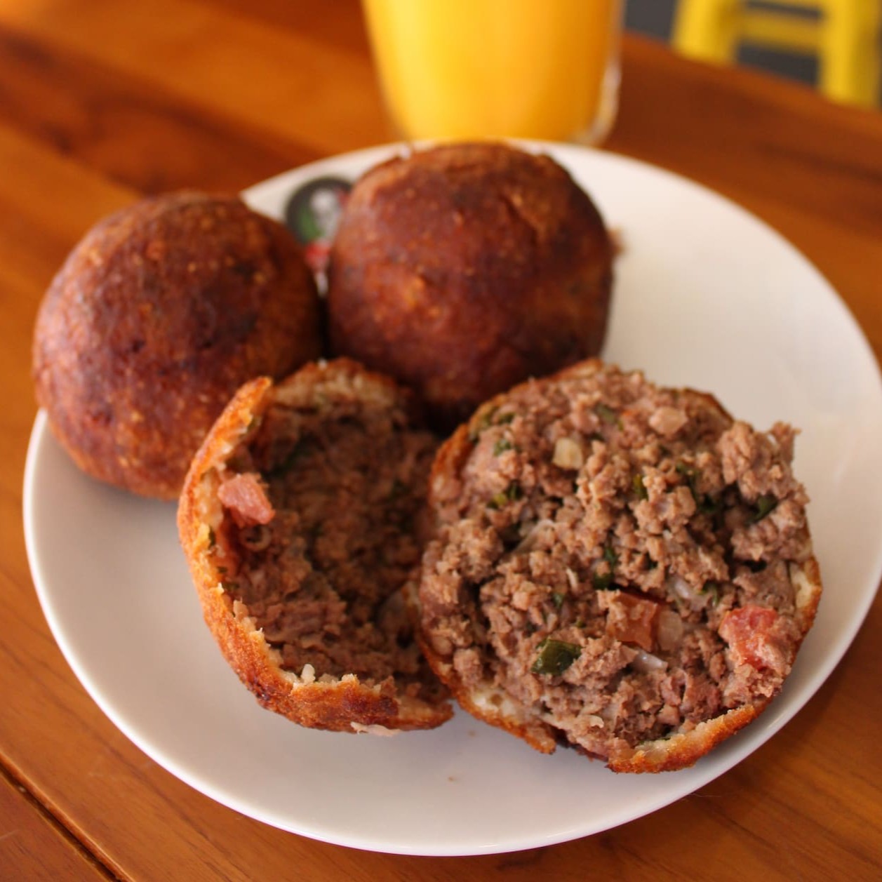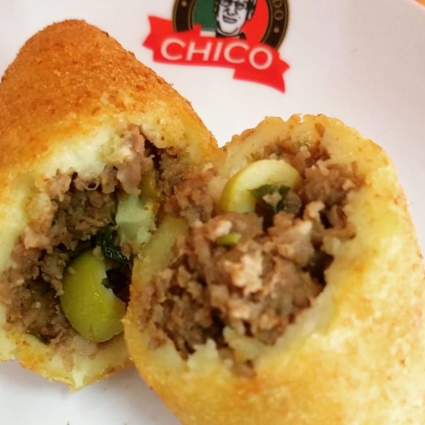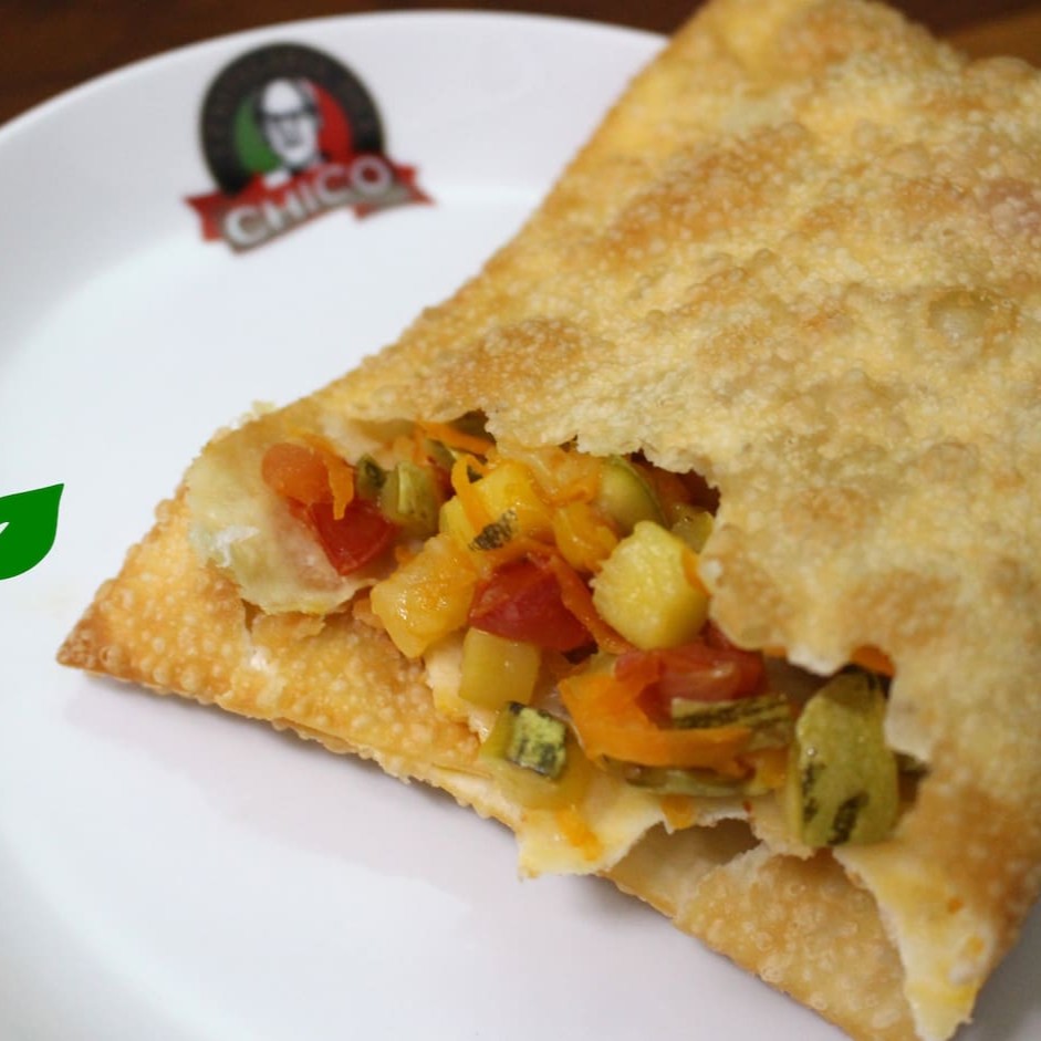 Salgado a base de trigo, recheado com carne, salsinha e azeitona