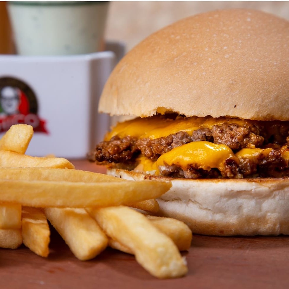 2 Carnes, Queijo Prato, Molho Tasty, Maionese Acompanha fritas.