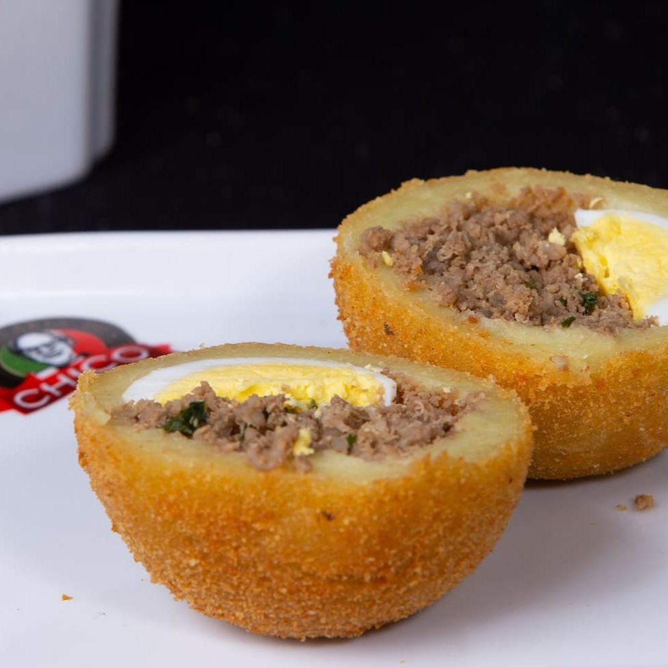 Salgado frito, massa de trigo recheado com carne e ovo cozido