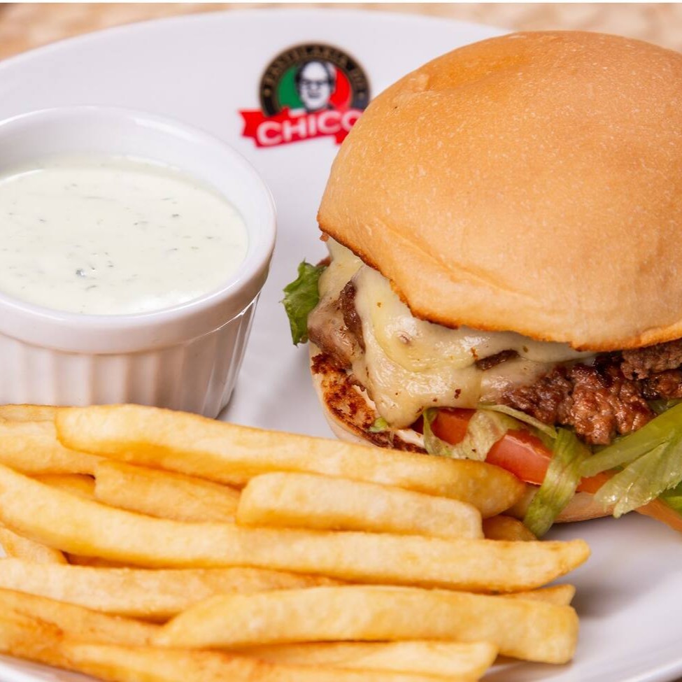 2 Carnes, Mussarela, Tomate, Alface, Maionese, Acompanha fritas