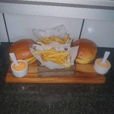 2 lanches chefia burguer (Pão, burguer, queijo prato, tomate, alface americana e molho especial) + 2 batata frita de 100g + Coca Cola de 1lt.