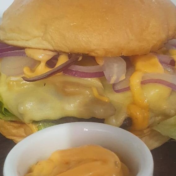 Pão Brioche, blend de costela 150g, bacon, queijo prato e maionese de cebola roxa defumada.
