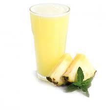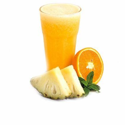 Suco da laranja natural, mais abacaxi fruta,batido no liquidificador e levemente adoçcado com acúcar