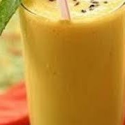 Maracujá fruta batido no liquidificador com leite integral e levemente adoçado com açúcar