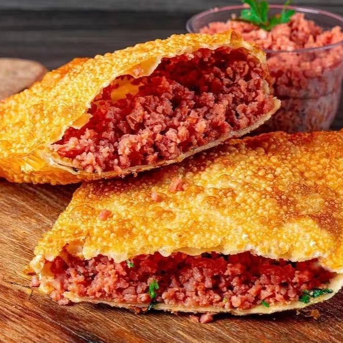 Pastel crocante, recheado com carne moída bem temperada e preparado na hora para garantir sabor e frescor. Uma explosão de sabor a cada mordida!