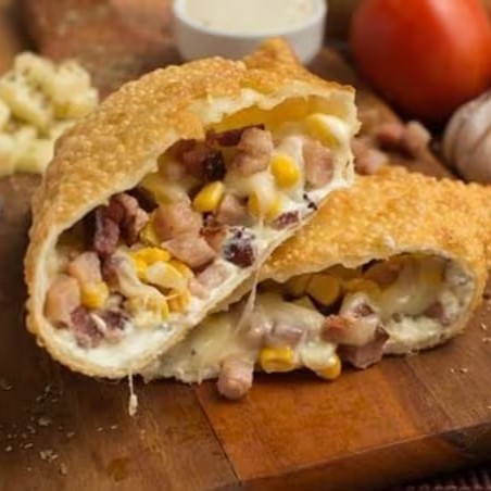 Pastel frito na hora com massa crocante e recheado com carne moída temperada, milho doce, bacon crocante e mussarela derretida. Uma mistura perfeita de sabores marcantes com muito recheio e qualidade!