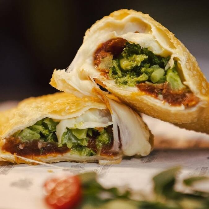 Pastel frito na hora com massa sequinha e crocante, recheado com palmito macio, brócolis refogado e tomate fresquinho. Uma opção leve, saborosa e perfeita para quem busca um recheio mais natural e saudável!