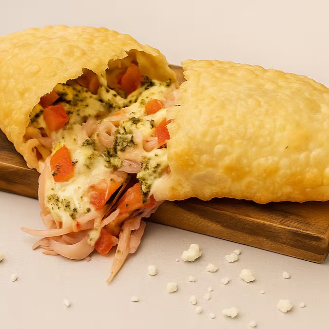 Pastel frito na hora, recheado com frango desfiado temperado, mussarela derretida e brócolis refogado. Uma combinação equilibrada e saborosa com aquele toque caseiro e uma massa sempre crocante!