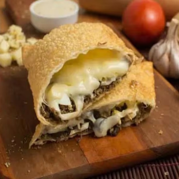 Pastel frito na hora com massa sequinha e crocante, recheado com carne moída bem temperada, ovo cozido e mussarela derretida. Um sabor tradicional com aquele toque caseiro que todo brasileiro ama!