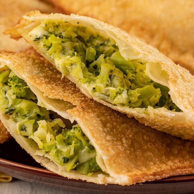 Pastel frito na hora, com recheio super cremoso de creme de milho, Catupiry e brócolis refogado. Leve, saboroso e com aquele toque caseiro que faz toda a diferença!