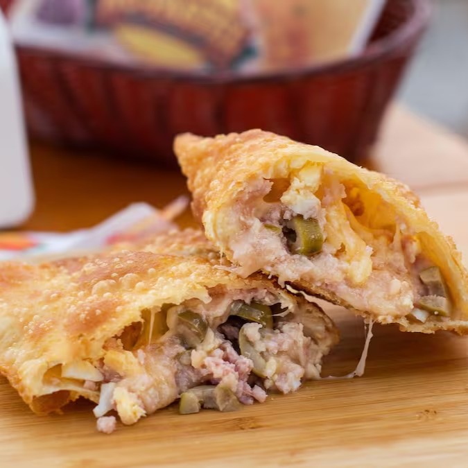 Pastel exclusivo com frango desfiado bem temperado, cheddar cremoso e azeitonas fatiadas. Frito na hora com massa sequinha e crocante. Sabor marcante, cremoso e com aquele toque especial que só o Francheddar tem!