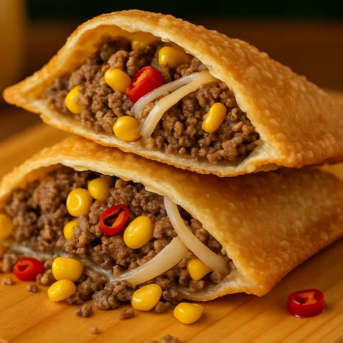 Pastel frito na hora, recheado com carne moída temperada, milho doce, cebola refogada e um toque de pimenta na medida certa. Uma combinação intensa e saborosa, perfeita pra quem gosta de pastel com personalidade!