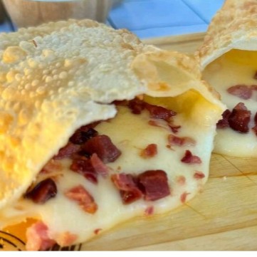 carne com queijo, calabacon, frango com queijo, queijo, pizza e carne.