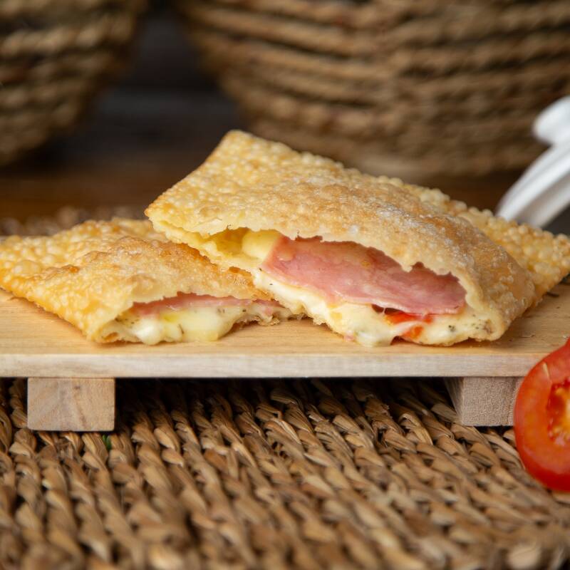Explore a perfeição do nosso Pastel de Queijo Mussarela, onde a generosidade do queijo mussarela derretido se encontra com a crocância da nossa massa premium artesanal. Cada mordida é uma experiência de puro prazer!