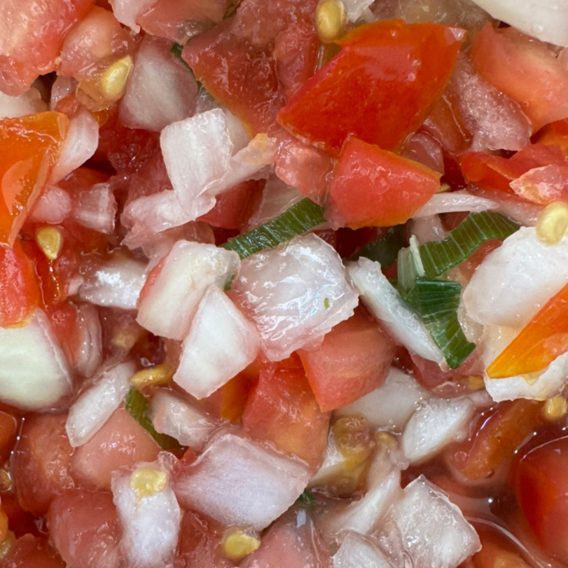 Vinagrete fresco com tomate, cebola e cheiro verde.