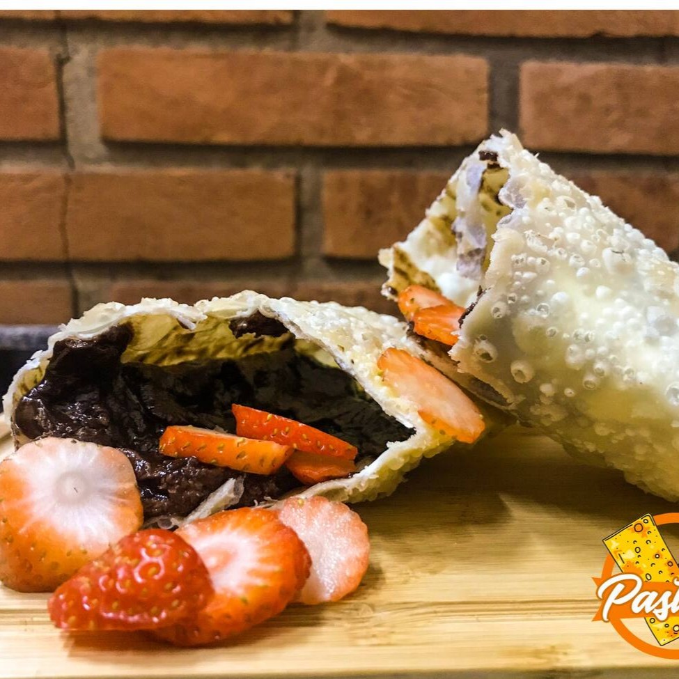 Aquele pastel doce de chocolate quentinho numa massa crocante e sequinho ótima sobremesa sem erro