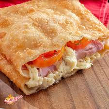 Pastel Recheado com Frango, Bacon, Catupiry e Milho)