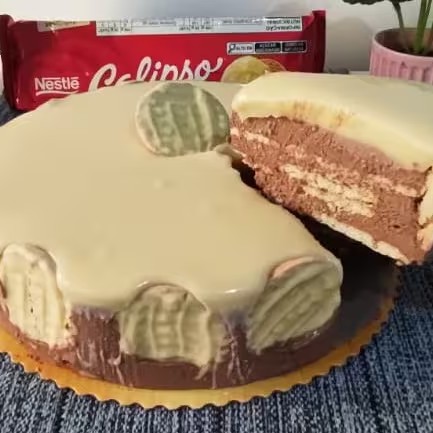 Delicioso creme gelado, contendo de creme de leite, açúcar, manteiga, leite condensado, biscoito maria e biscoito coberto com uma ganache de chocolate nobre meio amargo e decorado com bolacha calipso. Sendo um dos clássicos da confeitaria, dispensa comentários, não deixem de provar. Pedaço individual