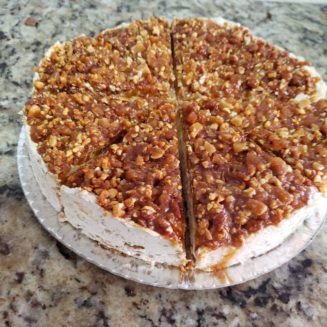 Delicioso creme gelado, essa deliciosa torta contém, castanha de caju, e amendoim, creme de leite, açúcar, manteiga, leite condensado, extrato de baunilha, biscoito maisena. Para finalizar recebe uma farta camada de mix de crocante de castanha de caju e amendoim. Quem experimenta, se apaixona!!!!!Pedaço individual.