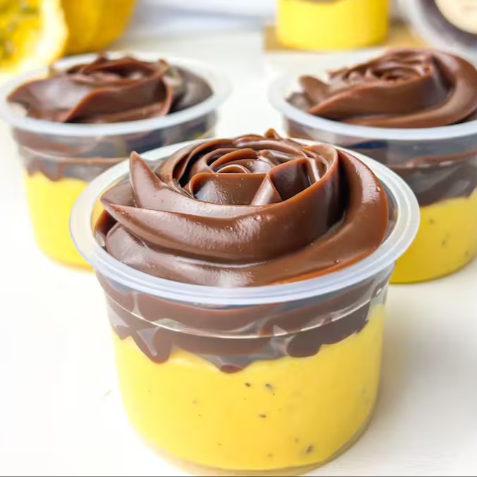 Delicioso brigadeiro de colher composto por nosso mousse de maracujá ( da fruta) extremamente cremoso e gostoso, receita simplesmente perfeita e nosso super queridinho brigadeiro ao leite feito com chocolate 50% cacau super cremoso. Finalizado com granulado de chocolate nobre.