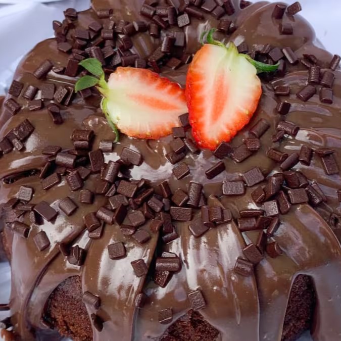 Bolo caseiro com massa de chocolate extremamente fofinha e saborosa, que derrete na boca, feita com chocolate de 50% de cacau. Cobertura de brigadeiro gourmet, cremosíssimo e rico em sabor, feito com chocolate de alta qualidade. Para finalizar granulé de chocolate nobre.