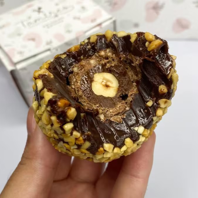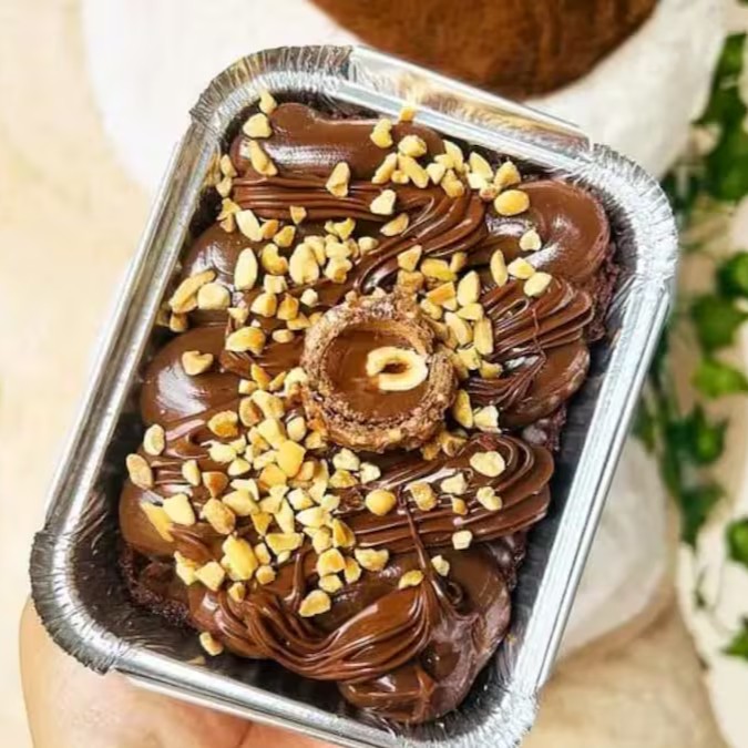 Composta por brigadeiro cremoso 50% cacau delicioso. Brownie bem molhadinho e super chocolatudo, amendoim triturado, Nutella Original pura. Finalizado com bombom Ferrero rocher.