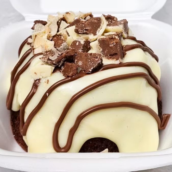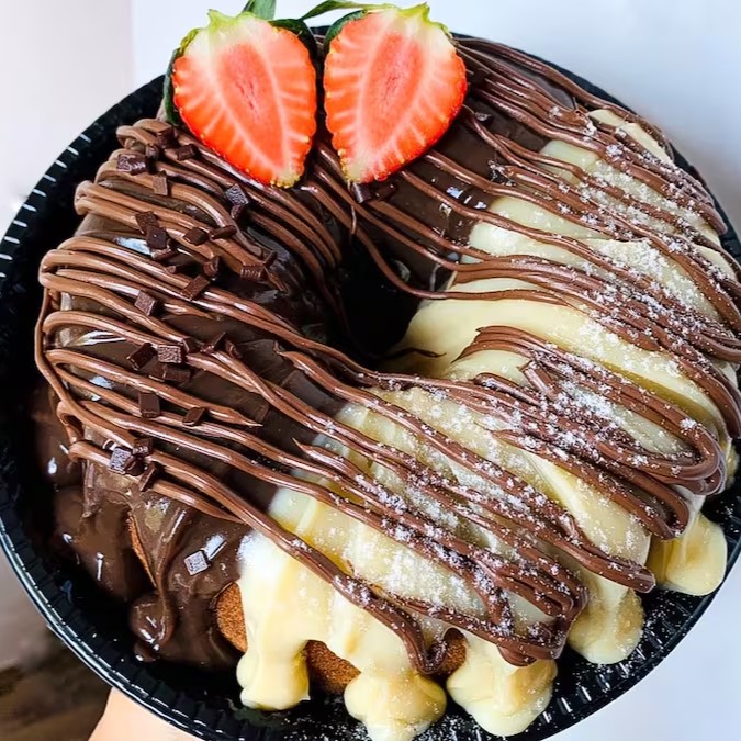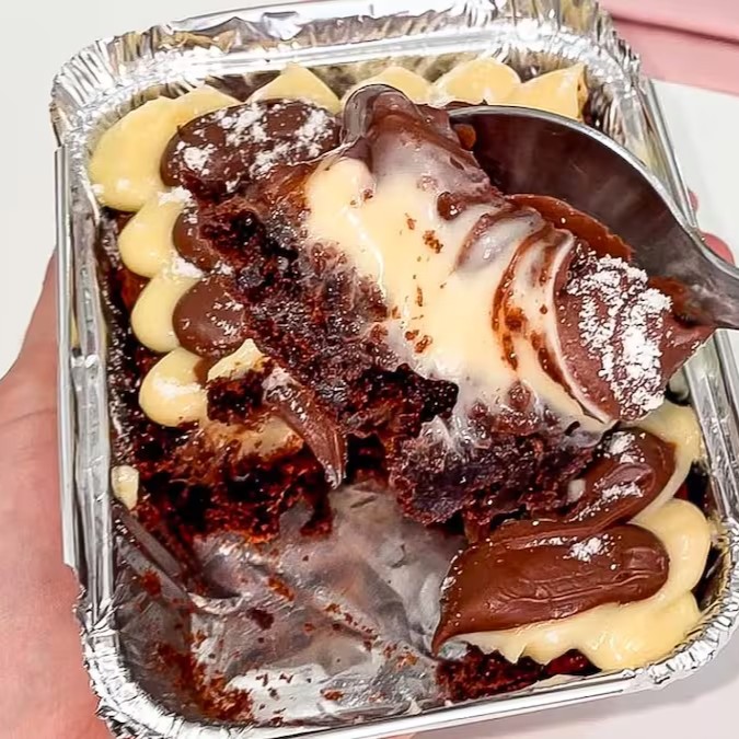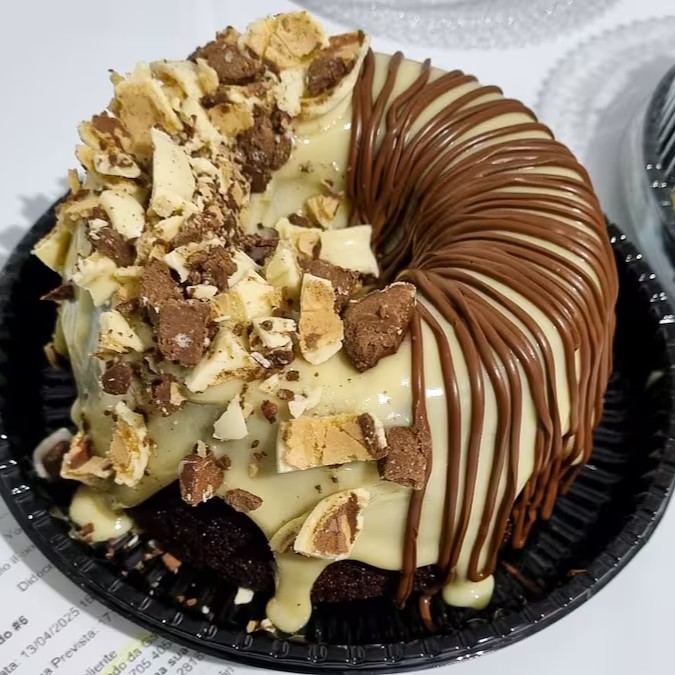 Massa de chocolate super fofinha que derrete na boca. Cobertura de brigadeiro de leite Ninho super cremoso. Finalizado com fios de Nutella (Original) bem caprichado.
