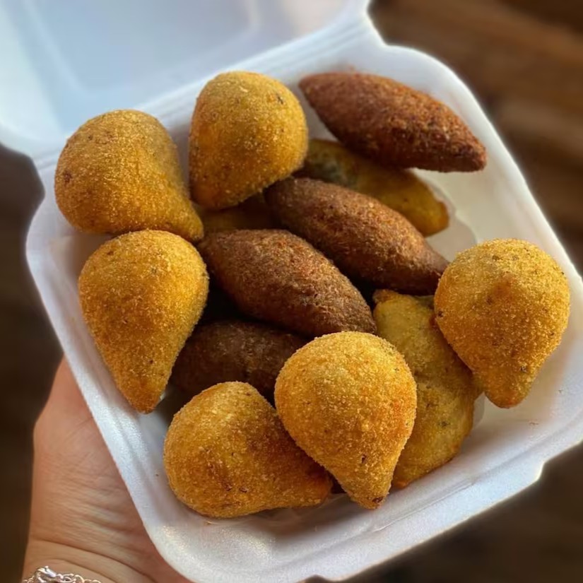 Coxinha, Bolinha de queijo, Bolinho de carne, Presunto e queijo, Salsicha, Calabresa